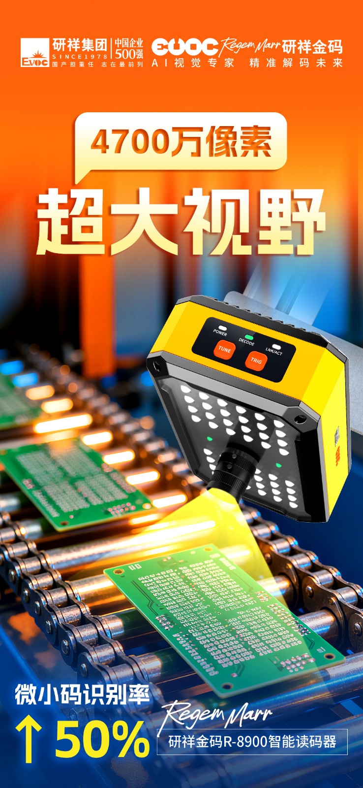 作为行业首款4700万像素的智能读码器,BB贝博艾弗森BallbetR-8900单次识读即可覆盖500+条码,视野范围高达常规读码器的25倍。